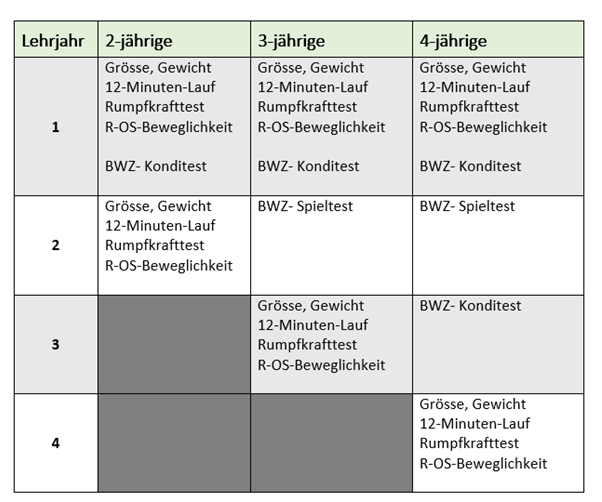 Übersicht BWZ-Leistungstests